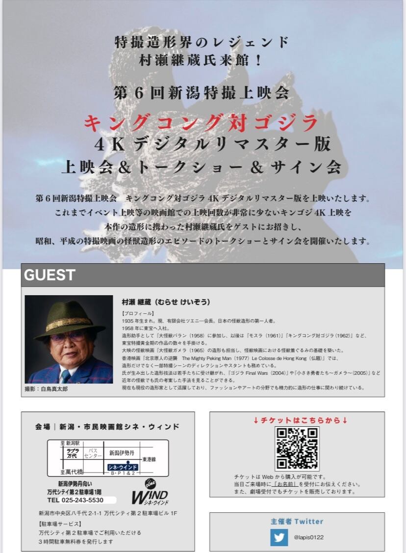 第6回新潟特撮上映会 キングコング対ゴジラ4Kデジタルリマスター版 村瀬継蔵トークショー&サイン会